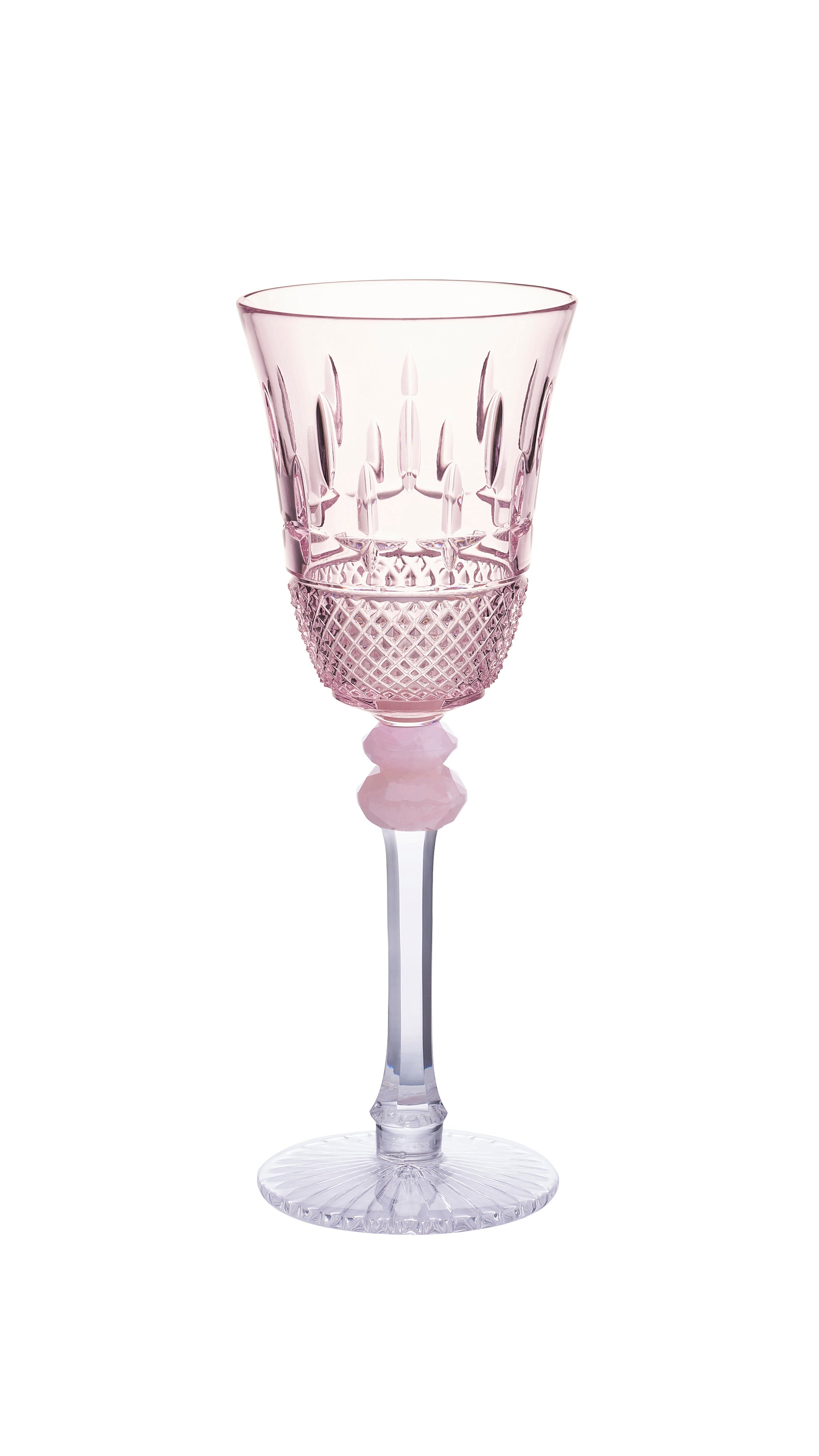 The crystal is as clear as drifting clouds, while the pink quartz breathes a soft glow upon the cup's form.